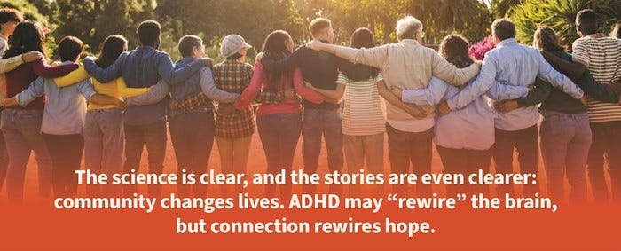 The science is clear, and the stories are even clearer: community changes lives. ADHD may “rewire” the brain, but connection rewires hope.